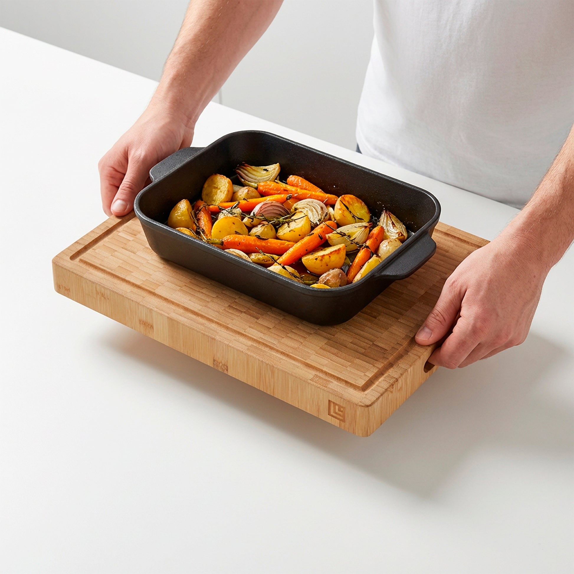 INTEGRATED HANDLE FOR EASY HANDLING: Allows easier lifting and repositioning during prep, cleaning, and storage, helping manage the added weight of a solid butcher’s block without needing to grip from the sides or edges.
