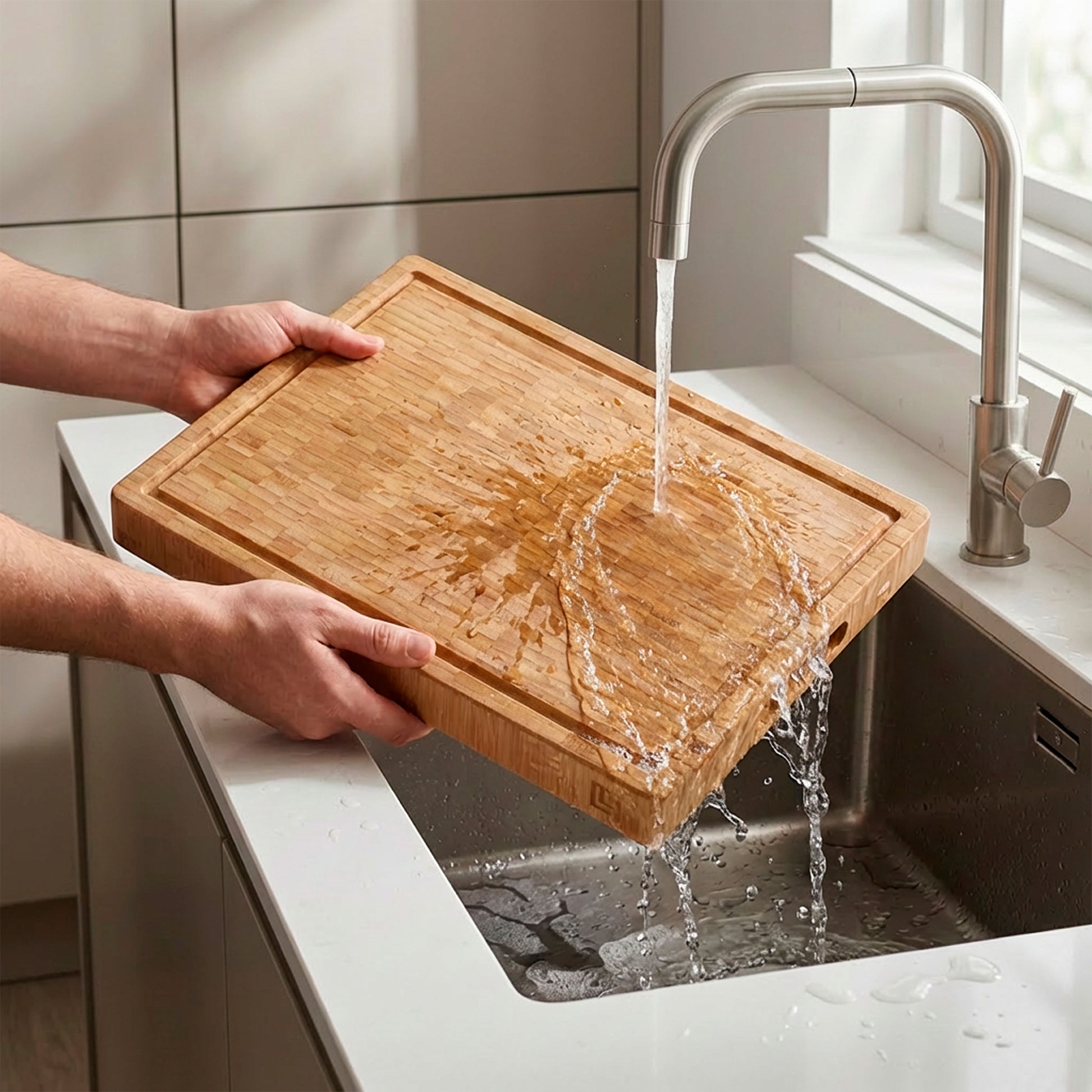 END GRAIN BAMBOO: Made with an end grain construction, providing an exceptionally durable and stable surface for heavier chopping and prep tasks and a structure well-regarded for being gentler on knife edges.