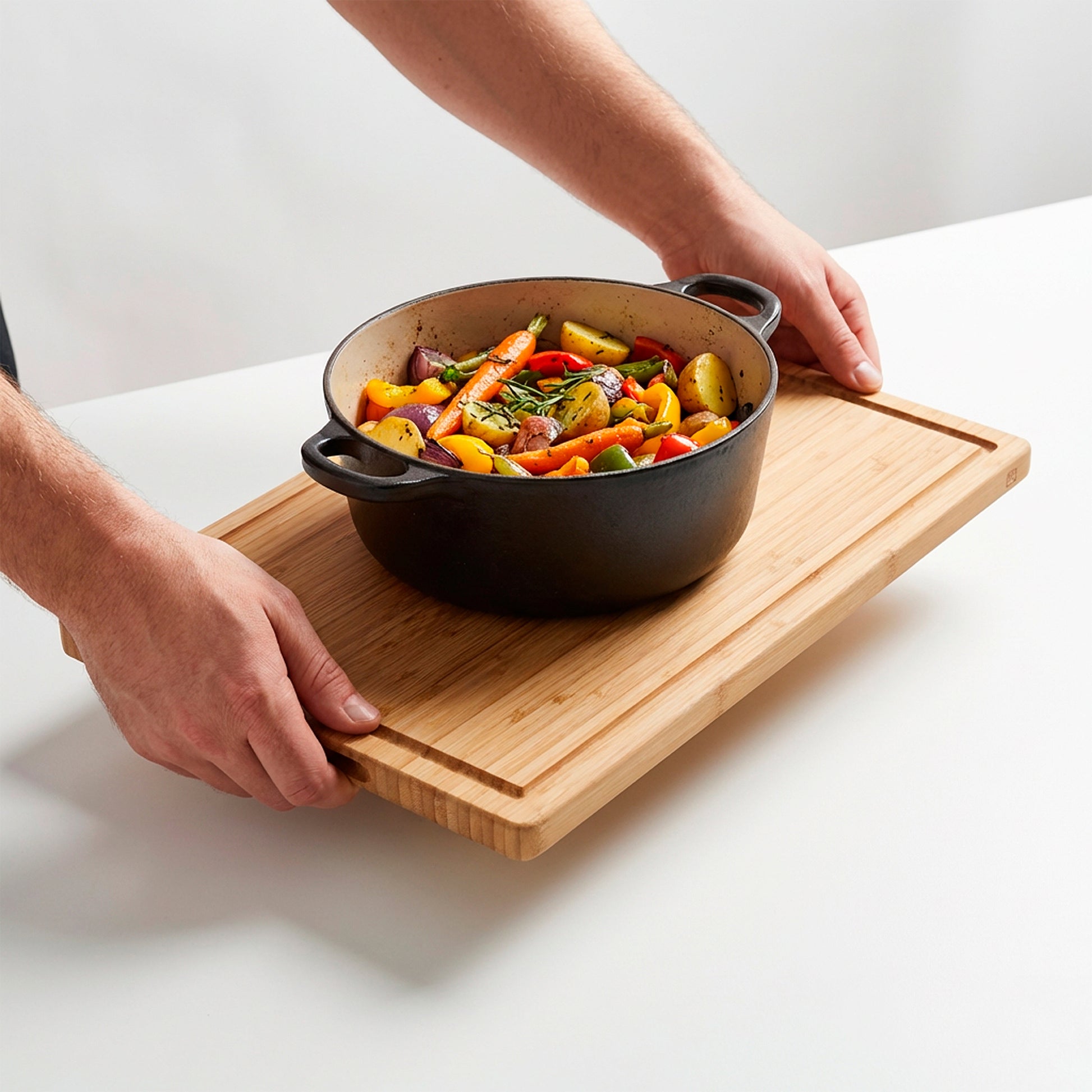 SOLID VERTICAL GRAIN BAMBOO: Made from solid bamboo with a vertical grain construction, with smoothly rounded edges, providing a stable base for regular food preparation. Not laminated or layered.