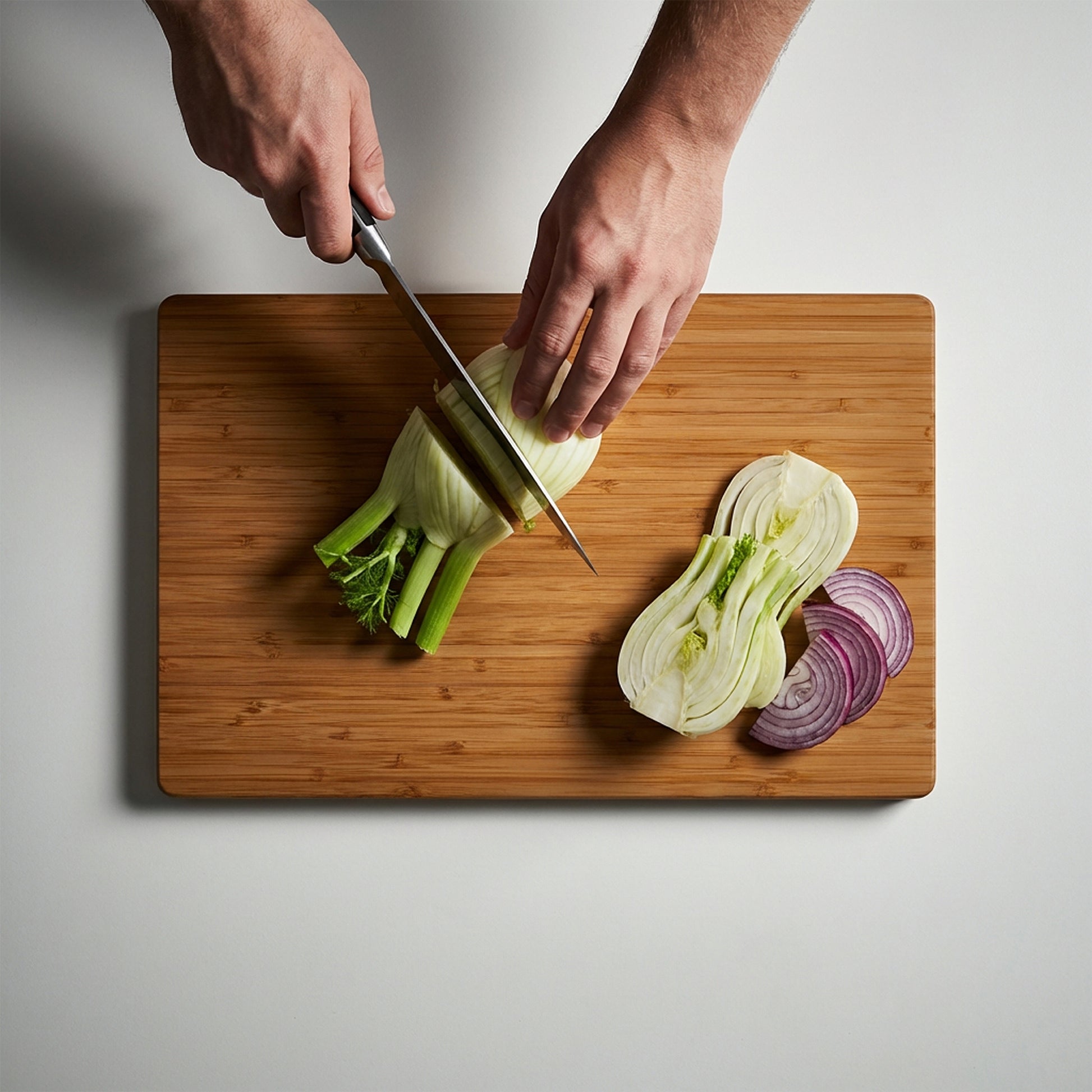 BUILT-IN JUICE GROOVE & FLAT PREP SURFACE: On one side, an integrated juice groove helps contain liquids and keeps surfaces clean, while the reverse provides a clear prep surface for everyday chopping and slicing.